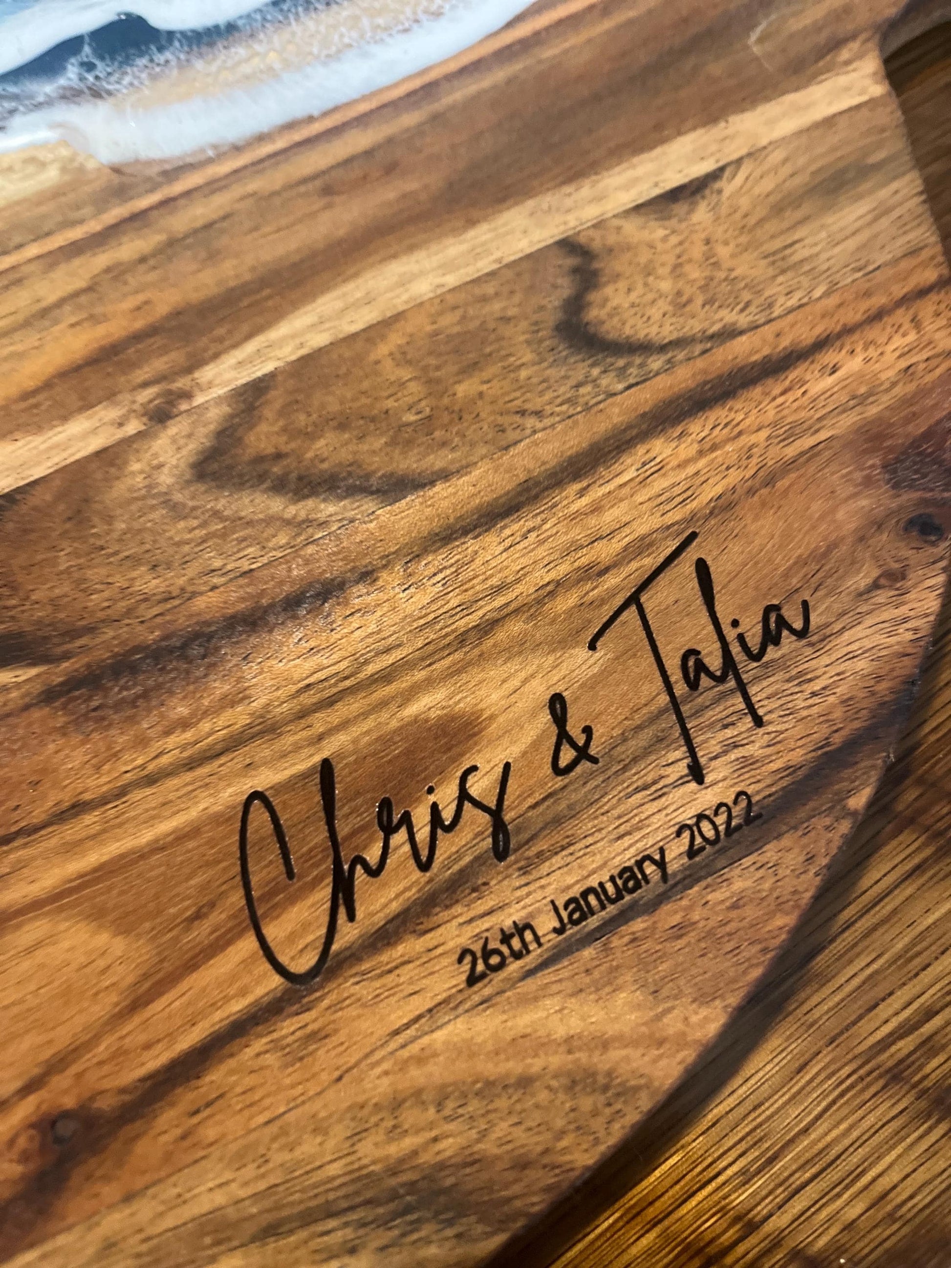 Large Ocean Resin Board, Serving Platter, Personalised Gift, Engraved Charcuterie Chopping Board- Engagement, Wedding, Anniversay Gift-