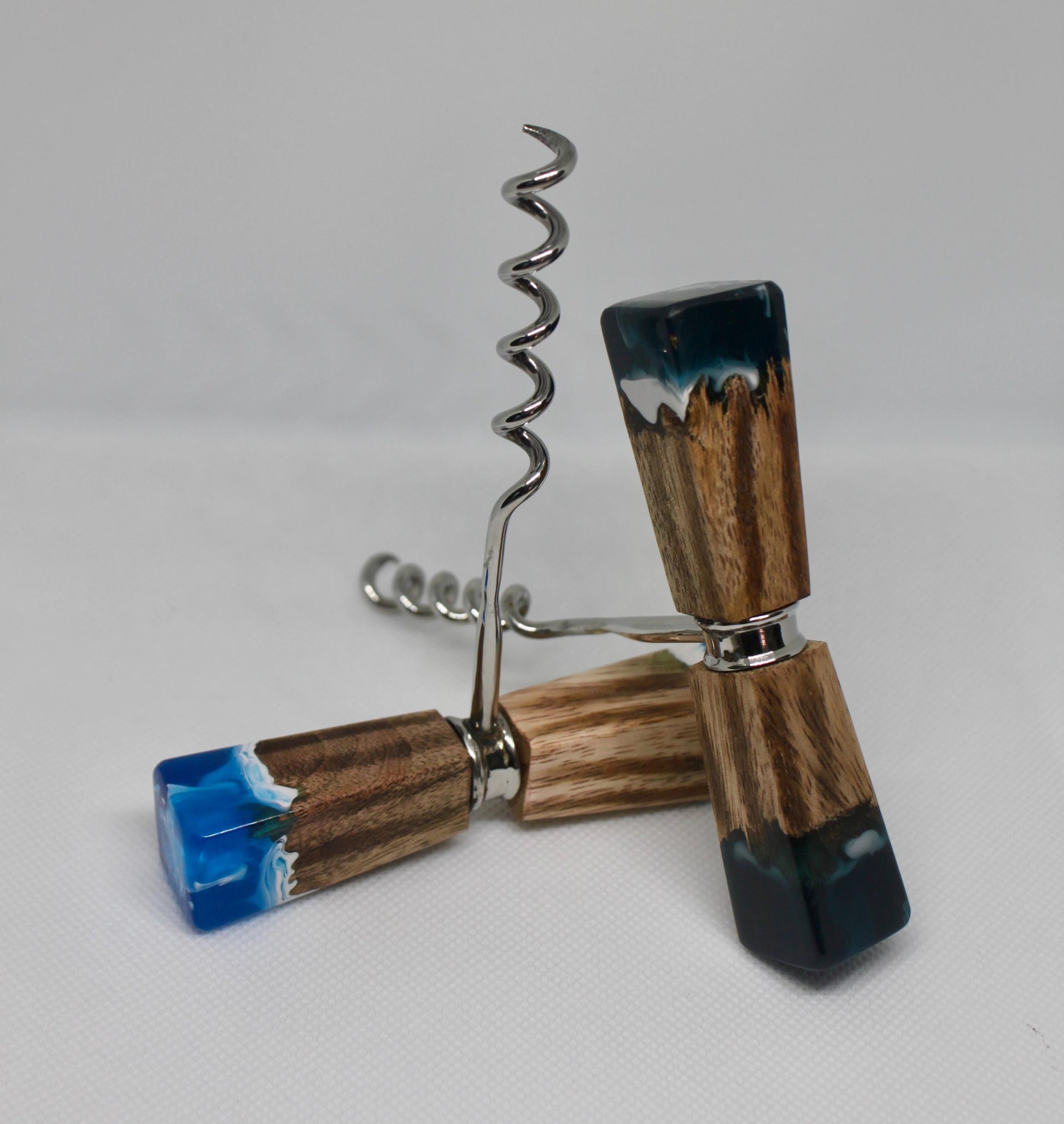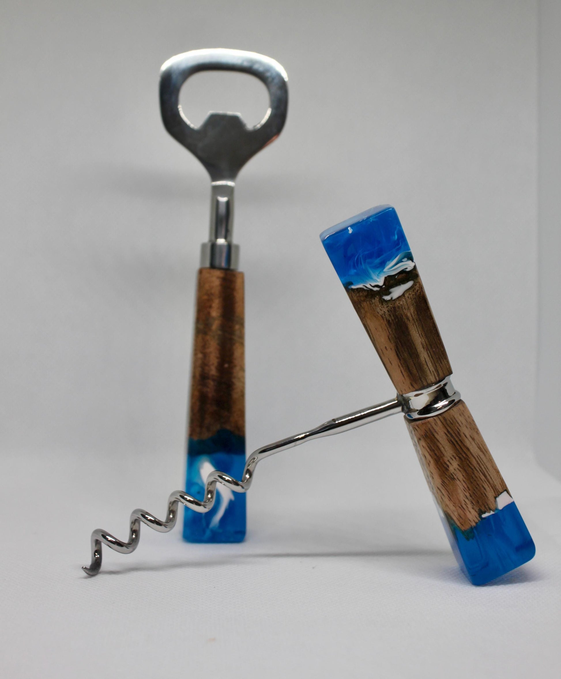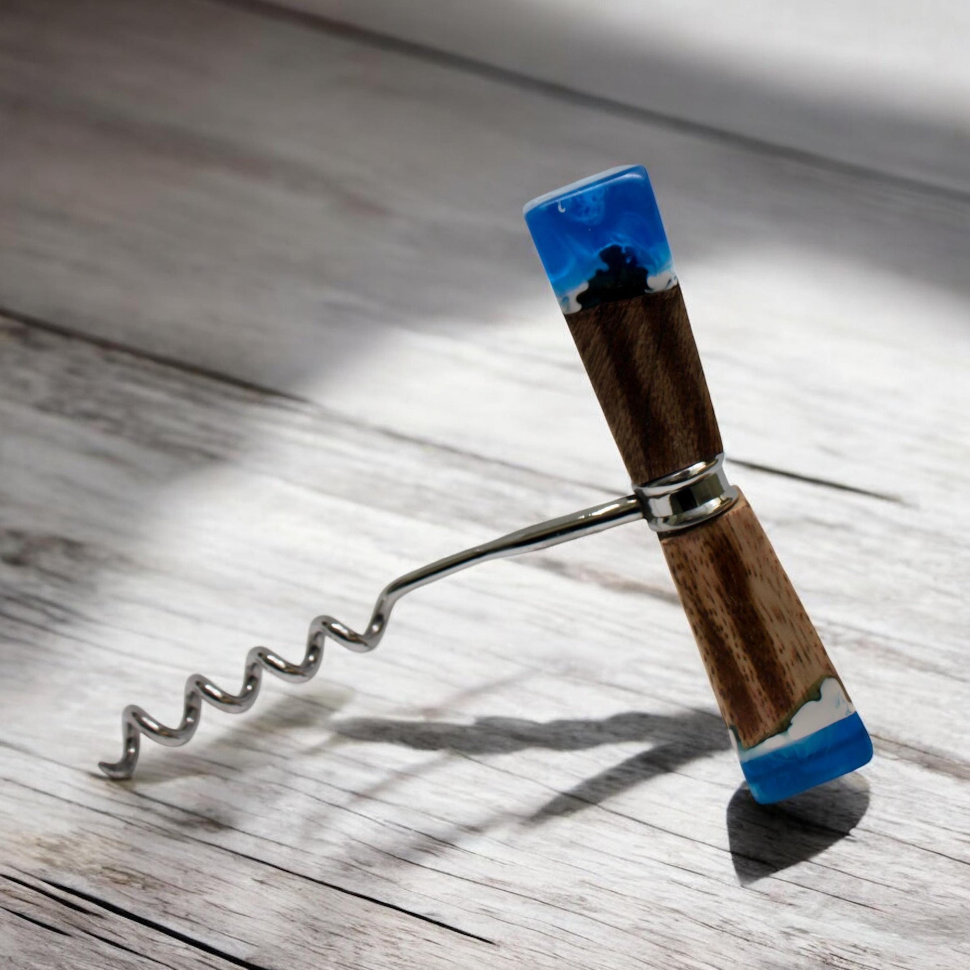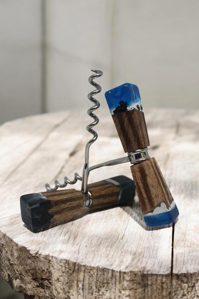 Elevate your entertaining with this handcrafted resin corkscrew opener and bottle opener, blending art and function in one striking piece. Featuring a durable stainless steel and a unique hand-poured resin handle, each item is one-of-a-kind, with ocean-inspired swirls that make it truly special. Ideal for cheese lovers, it adds style to any grazing board and makes a thoughtful gift for weddings, housewarmings, or special occasions.