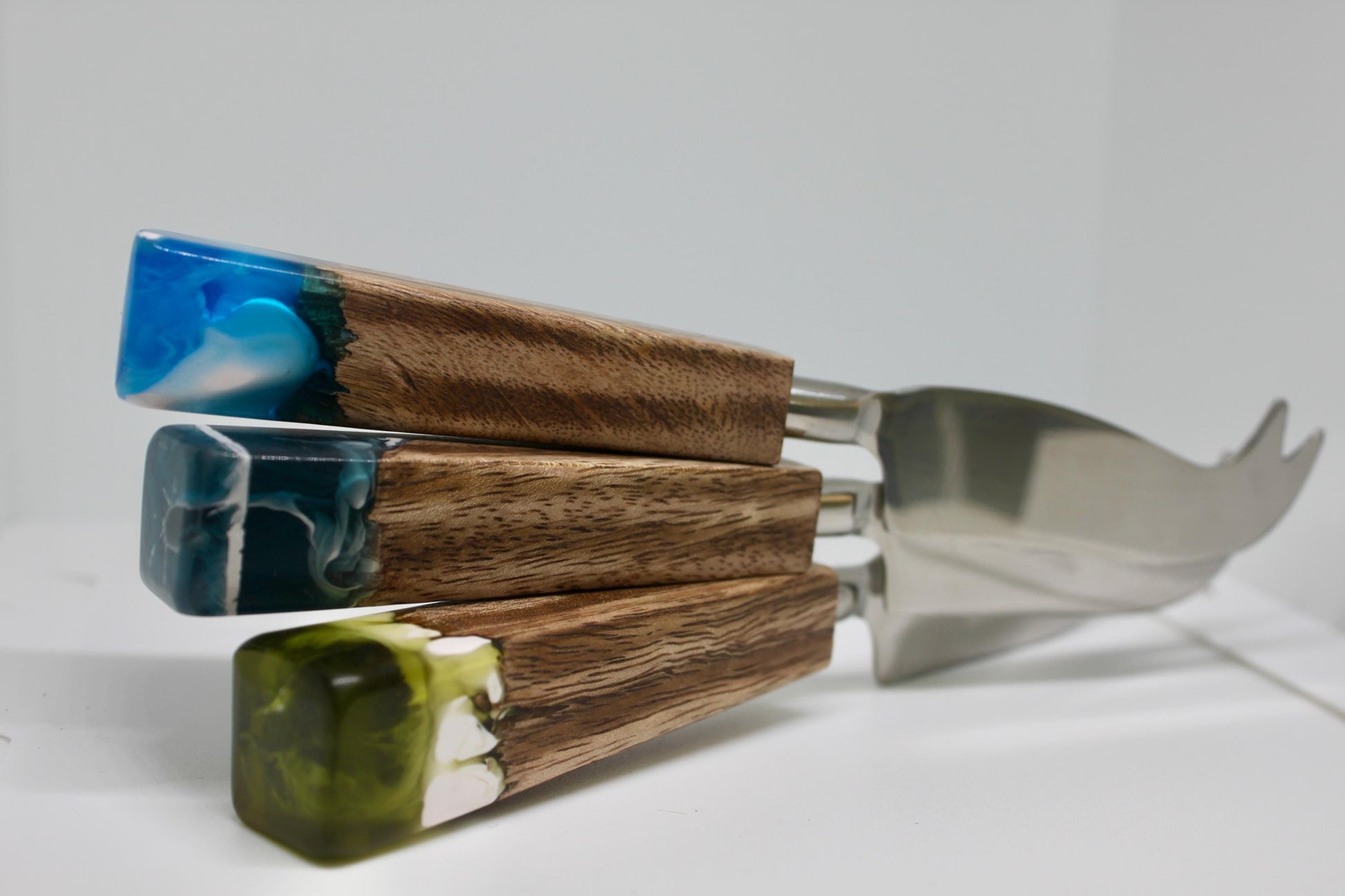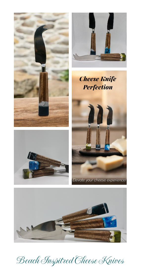 Elevate your entertaining with this handcrafted Resin Cheese Knife, blending art and function in one striking piece. Featuring a durable stainless steel blade and a unique hand-poured resin handle, each knife is one-of-a-kind, with ocean-inspired swirls that make it truly special. Ideal for cheese lovers, it adds style to any grazing board and makes a thoughtful gift for weddings, housewarmings, or special occasions.